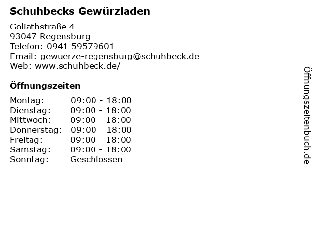 | Öffnungszeiten Schuhbecks Gewürzladen in Regensburg anzeigen | |