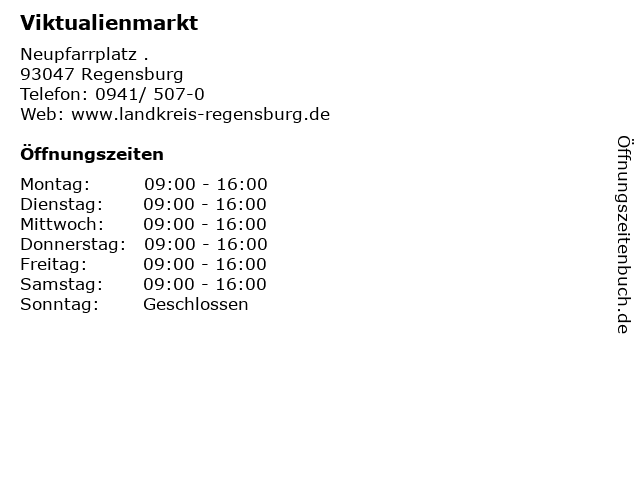 | Öffnungszeiten Viktualienmarkt in Regensburg anzeigen | |