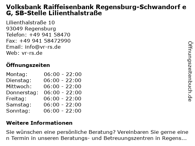 Branchen & Suchbegriffe zu Volksbank Raiffeisenbank Regensburg-Schwandorf eG, SB-Stelle Lilienthalstraße:absicherung, altersvorsorge, bank, banking, baufinanzierung, brokerage, eg, finanzberatung, geldanalge, geldautomat, girokonto, immobilien, immobilienfinanzierung, immobilienvermittlung, kredit, kreditkarte, lilienthalstraße, raiffeisenbank, sb, stelle, vermögensbildung, versicherungen, volksbank |