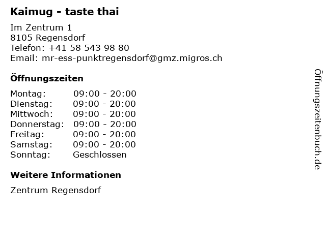 Öffnungszeiten Kaimug - taste thai in Regensdorf anzeigen | |