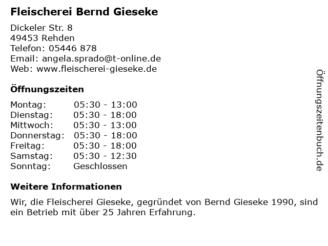 Fleischerei Bernd Gieseke in Rehden: Telefonnummer, Öffnungszeiten und Adresse