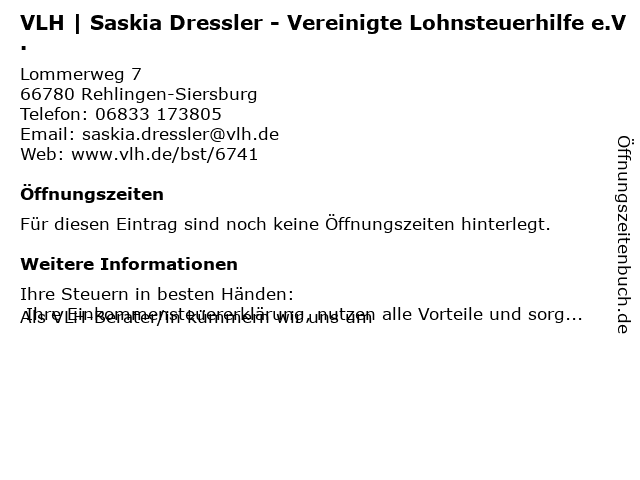 | VLH | Saskia Dressler - Vereinigte Lohnsteuerhilfe e.V. anrufen | |