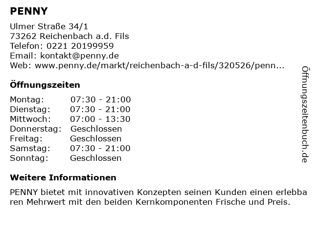 | Öffnungszeiten PENNY in Reichenbach a.d. Fils anzeigen | |
