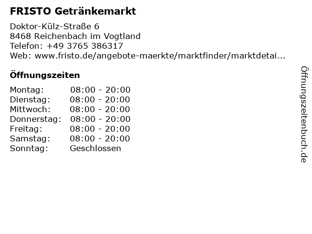 Öffnungszeiten FRISTO Getränkemarkt in Reichenbach im Vogtland anzeigen