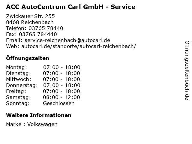 1 ACC AutoCentrum Carl GmbH - Verkauf & Beratung (Entfernung: 0,00 km) Zwickauer Str. 255, 08468 Reichenbach 6 Hort der Freien GS Regenbogen "Carl-Friedrich-Benz" (Entfernung: 17,71 km) Salutstraße 4, 08066 Zwickau |
