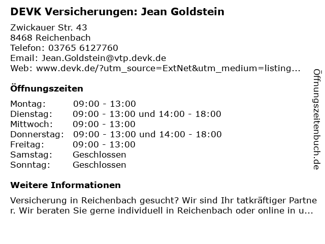 Branchen & Suchbegriffe zu DEVK Versicherungen: Jean Goldstein:altersvorsorge, autoversicherung, berufsunfähigkeitsversicherung, devk, gebäude- und hausratsversicherung, gewerbeversicherung, goldstein, jean, kfz-versicherung (motorrad), lebensversicherung, mietrechtsschutzversicherung, reiseversicherungsagentur, versicherungen |