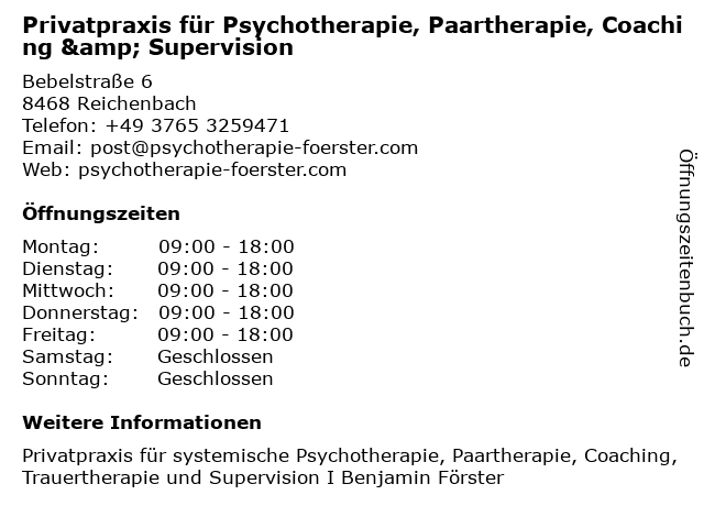 Branchen & Suchbegriffe zu Privatpraxis für Psychotherapie, Paartherapie, Coaching & Supervision:business trainer, coaching, eheberatung, eheprobleme, ehetherapie, paarberatung, paartherapie, privatpraxis, psychologe, psychologische beratung, psychotherapie, psychotherapie kosten, psychotherapie reichenbach, supervision |