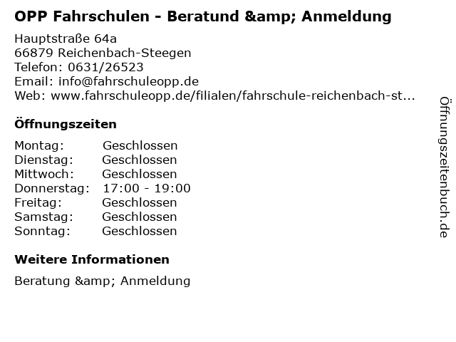 1 OPP Fahrschulen - Beratund & Anmeldung (Entfernung: 6,18 km) Steinwendener Straße 15, 66877 Ramstein-Miesenbach 6 |