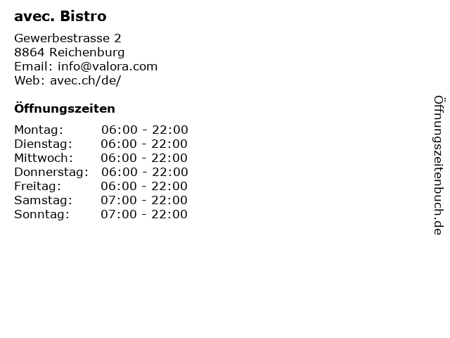 | Öffnungszeiten avec. Bistro in Reichenburg anzeigen | |