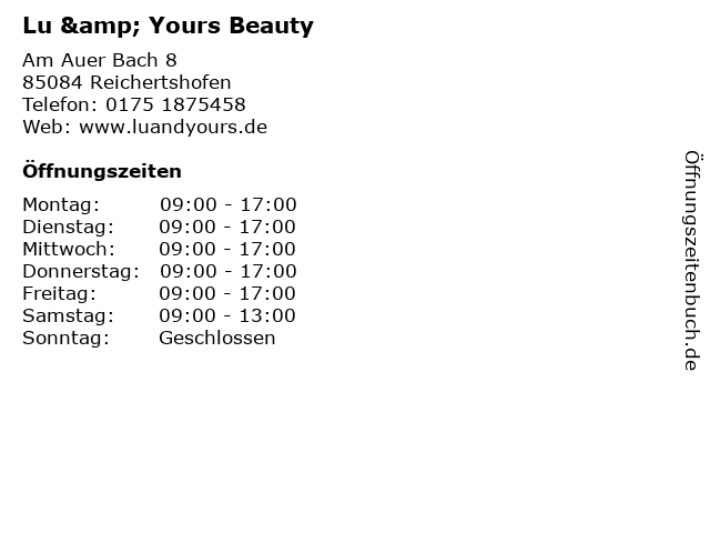 | Öffnungszeiten Lu & Yours Beauty in Reichertshofen anzeigen | |