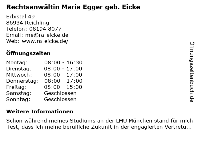 Branchen & Suchbegriffe zu Rechtsanwältin Maria Egger geb. Eicke:egger, eicke, geb., maria, rechtsanwältin |