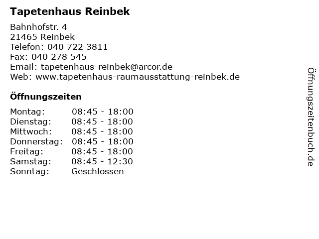 | Öffnungszeiten Tapetenhaus Reinbek in Reinbek anzeigen | |