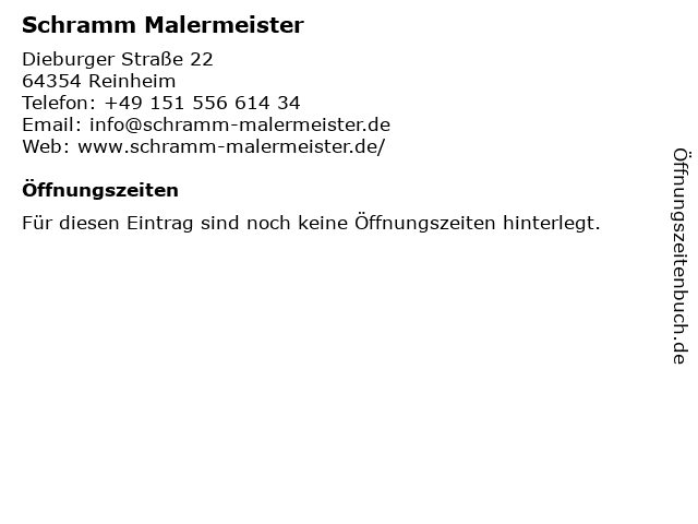 | Öffnungszeiten Schramm Malermeister in Reinheim anzeigen | |