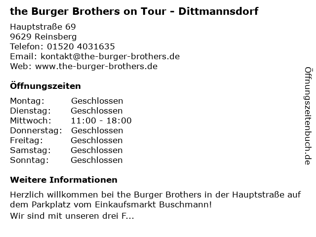 Branchen & Suchbegriffe zu the Burger Brothers on Tour - Dittmannsdorf:brothers, burger, dittmannsdorf, on, the, tour |
