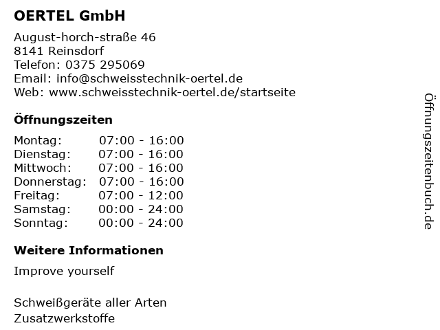 | Öffnungszeiten OERTEL GmbH in Reinsdorf anzeigen | |