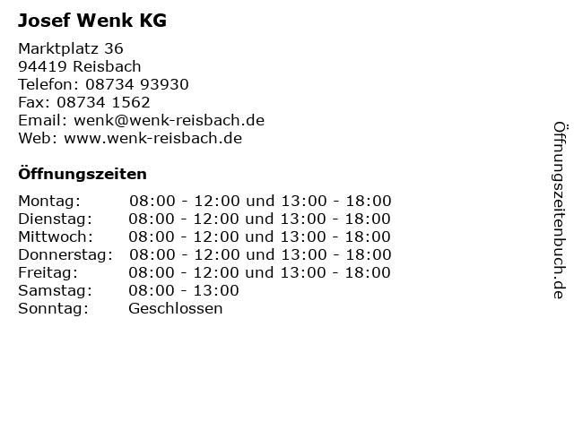 | Öffnungszeiten Josef Wenk KG in Reisbach anzeigen | |