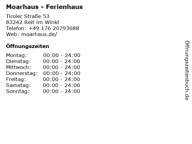 | Öffnungszeiten Moarhaus - Ferienhaus in Reit im Winkl anzeigen | |