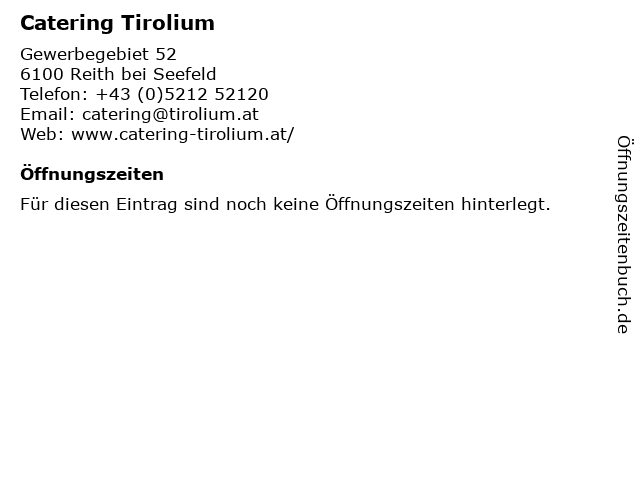| Öffnungszeiten Catering Tirolium in Reith bei Seefeld anzeigen | |
