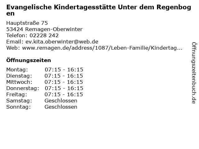 Branchen & Suchbegriffe zu Evangelische Kindertagesstätte Unter dem Regenbogen:dem, evangelische, kindergarten, kinderkrippe, kindertagesstätte, oberwinter, regenbogen, unter |