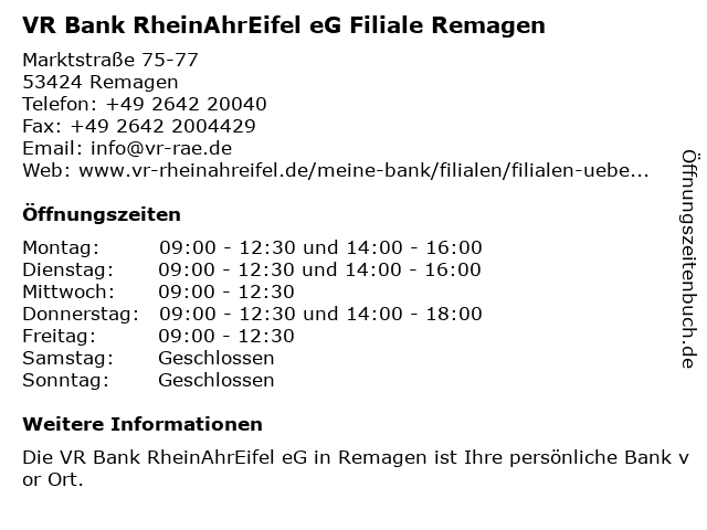 5 VR Bank RheinAhrEifel eG, SB Filiale Rheinbreitbach (Entfernung: 4,48 km) Hauptstraße 45, 53619 Rheinbreitbach 6 VR-Bank Neuwied-Linz eG (Geldautomat) (Entfernung: 8,82 km) Bischof-Stradmann-Str. 59, 53557 Bad Hönningen |
