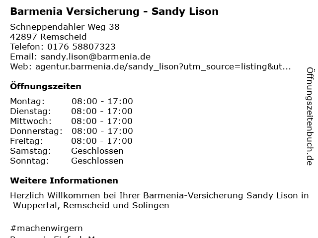 Branchen & Suchbegriffe zu Barmenia Versicherung - Sandy Lison:altersvorsorge, autoversicherung, barmenia, berufsunfähigkeitsversicherung, gebäude- und hausratsversicherung, lebensversicherung, lison, sandy, tierversicherung, versicherung, zahnmedizinische versicherung |