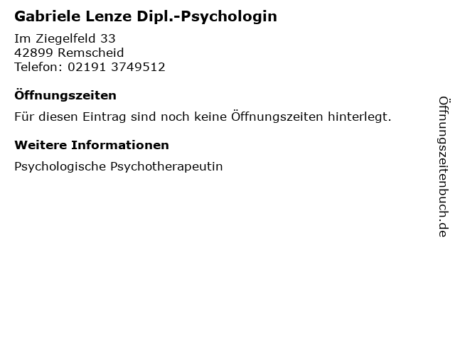 Branchen & Suchbegriffe zu Gabriele Lenze Dipl.-Psychologin:dipl., gabriele, lenze, psychologin |