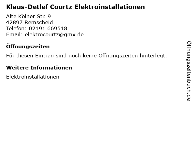 | Klaus-Detlef Courtz Elektroinstallationen anrufen | |