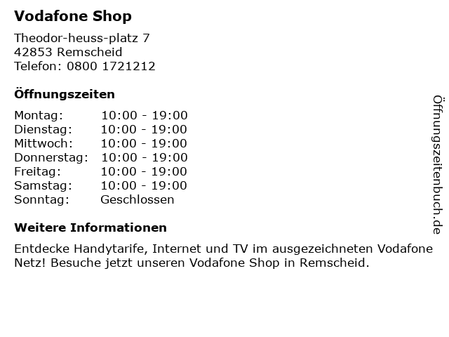 Öffnungszeiten Vodafone Shop in Remscheid anzeigen | |
