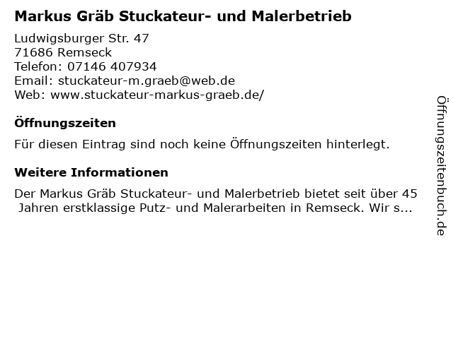 Öffnungszeiten Markus Gräb Stuckateur- und Malerbetrieb