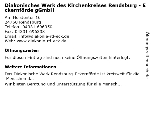 | Diakonisches Werk des Kirchenkreises Rendsburg - Eckernförde gGmbH anrufen | |