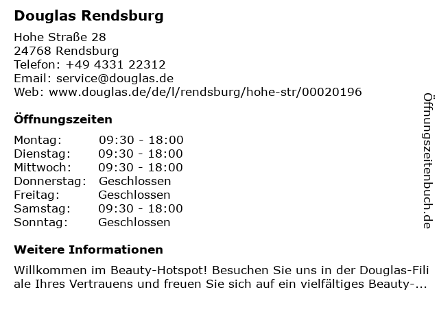| Öffnungszeiten Douglas Rendsburg in Rendsburg anzeigen | |