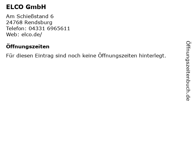 | Öffnungszeiten ELCO GmbH in Rendsburg anzeigen | |
