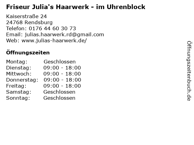 Branchen & Suchbegriffe zu Friseur Julia's Haarwerk - im Uhrenblock:friseur, friseurin, frisur, haare, haare schneiden, haarwerk, julia's, uhrenblock |
