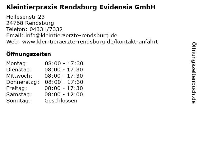 Branchen & Suchbegriffe zu Kleintierpraxis Rendsburg Evidensia GmbH:augenarzt, evidensia, kleintierpraxis, praxis, röntgen, tierarzt |