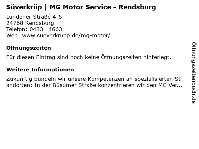 | Süverkrüp | MG Motor Service - Rendsburg anrufen | |