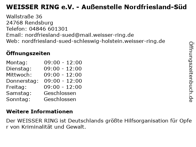 Branchen & Suchbegriffe zu WEISSER RING e.V. - Außenstelle Nordfriesland-Süd:außenstelle, e.v., nordfriesland, ring, süd, verband, weisser |
