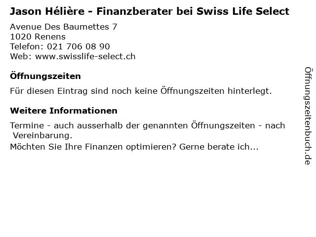 | Jason Hélière - Finanzberater bei Swiss Life Select anrufen | |