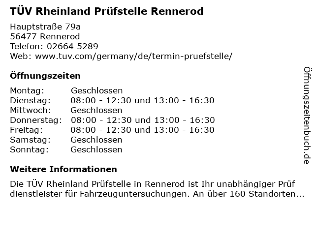 Branchen & Suchbegriffe zu TÜV Rheinland Prüfstelle Rennerod:prüfstelle, rheinland, tüv |