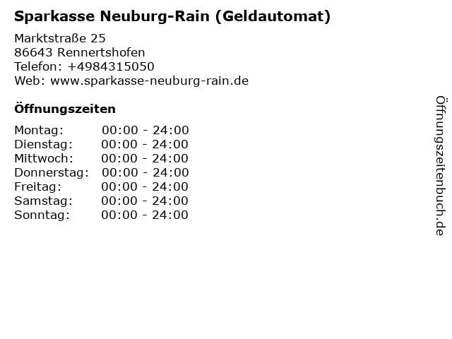 Sparkasse Altbayern (Geldautomat) in Rennertshofen: Telefonnummer, Öffnungszeiten und Adresse