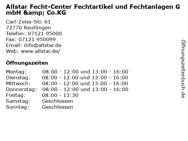 Branchen & Suchbegriffe zu Allstar Fecht-Center Fechtartikel und Fechtanlagen GmbH & Co.KG:allstar, center, co, co.kg, einzelhandel, fecht, fechtanlagen, fechtartikel, sportartikel |