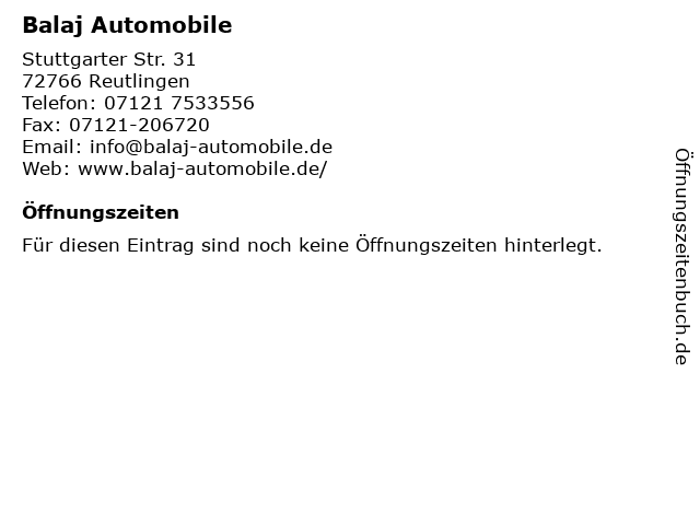 | Öffnungszeiten Balaj Automobile in Reutlingen anzeigen | |