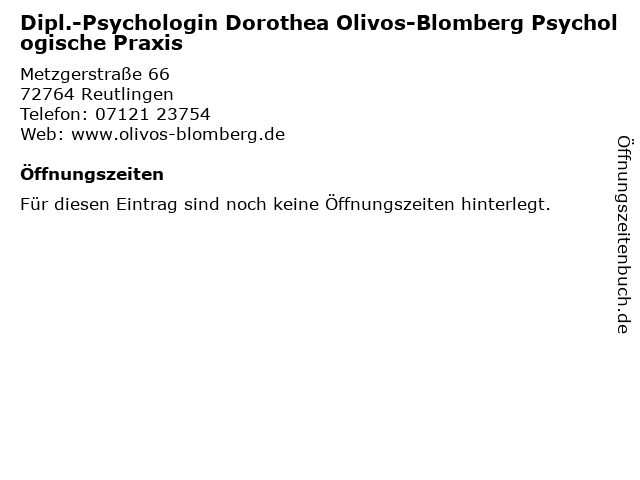 | Dipl.-Psychologin Dorothea Olivos-Blomberg Psychologische Praxis anrufen | |