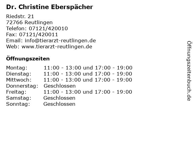 | Öffnungszeiten Dr. Christine Eberspächer in Reutlingen anzeigen | |