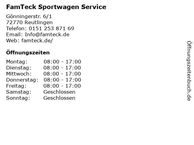 Branchen & Suchbegriffe zu FamTeck Sportwagen Service:famteck, instandsetzungen, oldtimer, reifenservice, service, sportwagen, tüv |