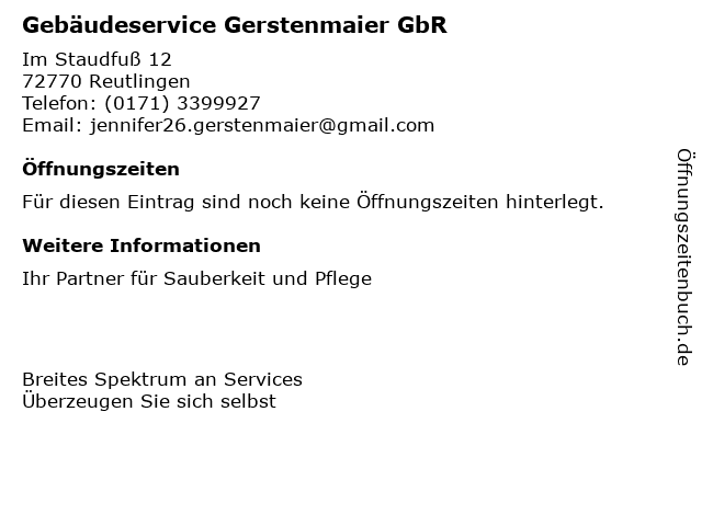 | Gebäudeservice Gerstenmaier GbR anrufen | |