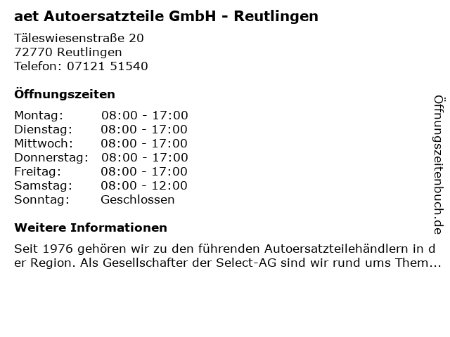 Branchen & Suchbegriffe zu aet Autoersatzteile GmbH - Reutlingen:aet, autoersatzteile |