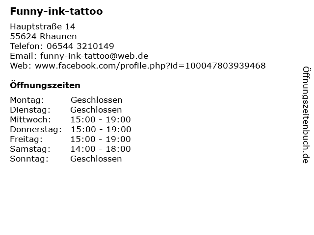 | Öffnungszeiten Funny-ink-tattoo in Rhaunen anzeigen | |