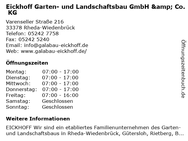 Branchen & Suchbegriffe zu Eickhoff Garten- und Landschaftsbau GmbH & Co. KG:eickhoff, garten, landschaftsbau |