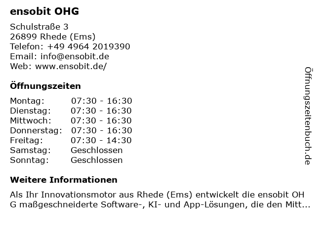 | Öffnungszeiten ensobit OHG in Rhede (Ems) anzeigen | |
