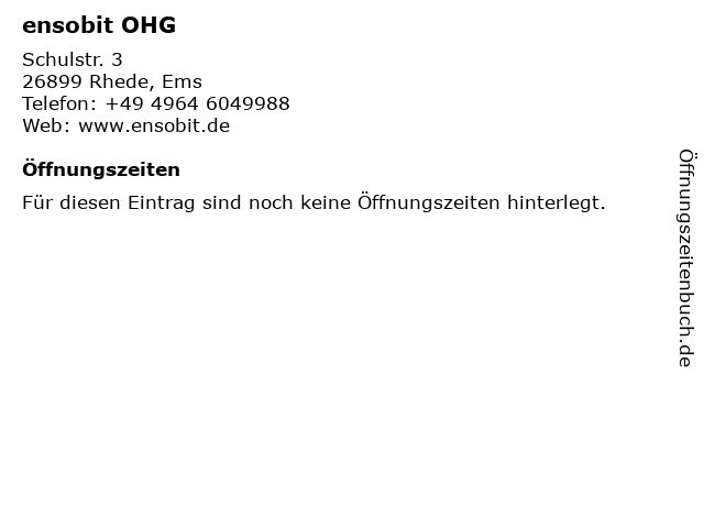| Öffnungszeiten ensobit OHG in Rhede, Ems anzeigen | |